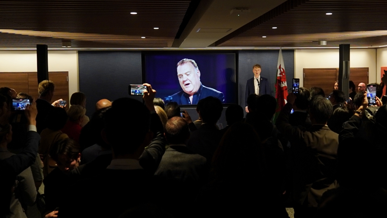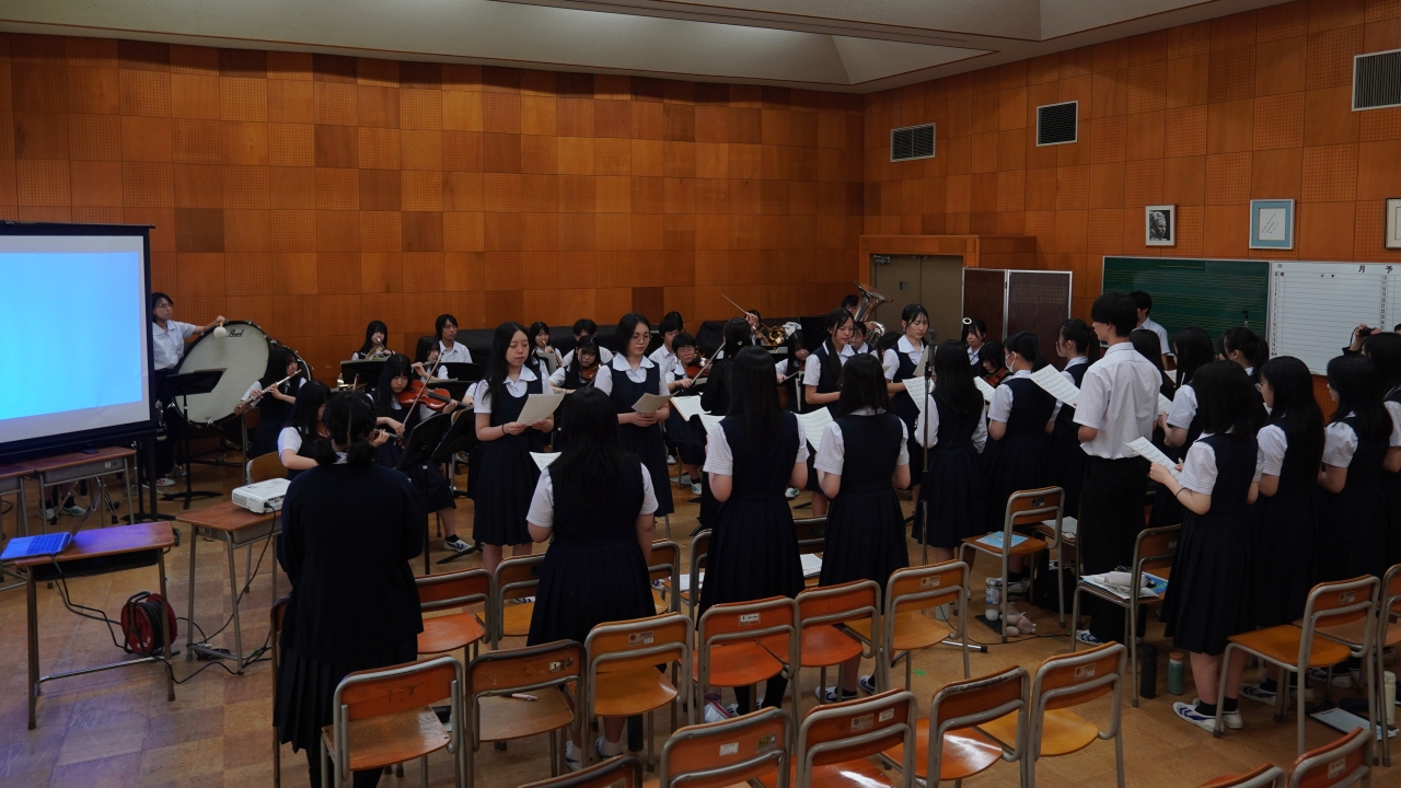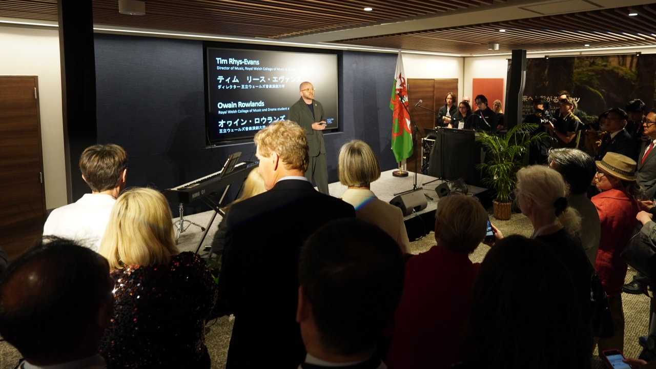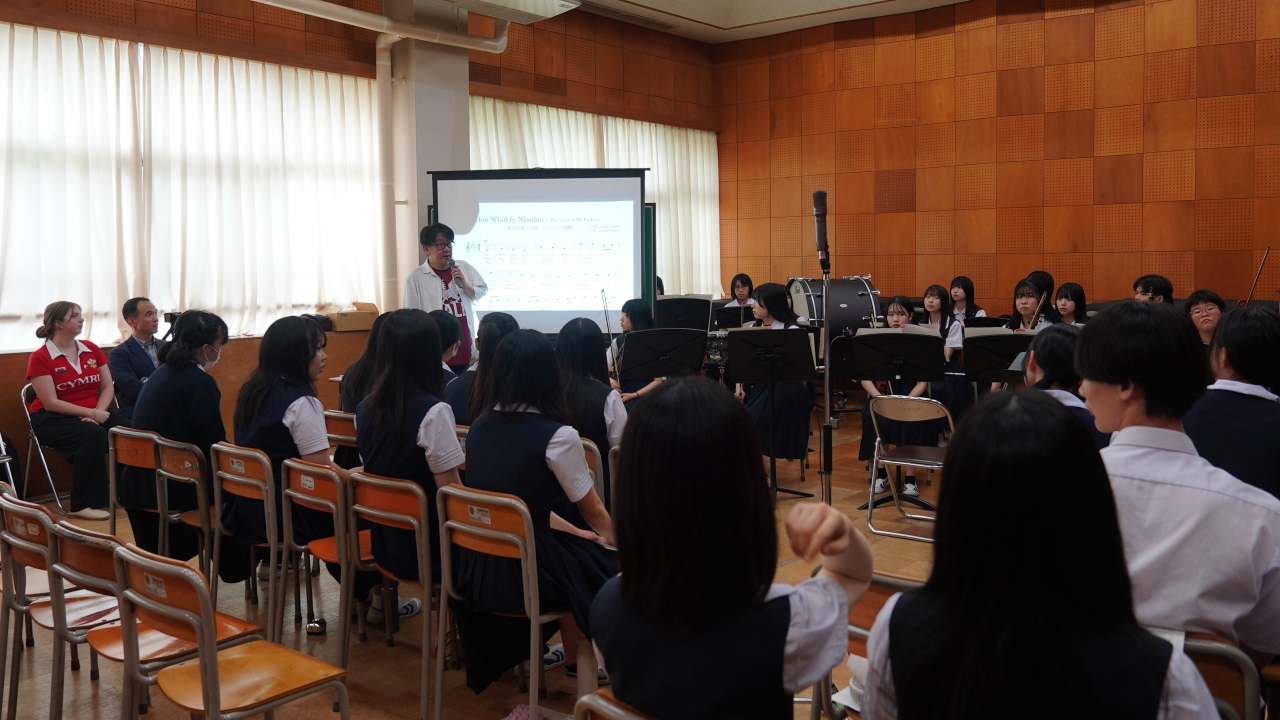 ウェールズ語の正しい発音から、単語の意味や、歌詞に秘められたウェールズ人の思いを、ウェールズとイングランドの歴史を踏まえて解説。また声楽の発生方法やオーケストラパートの細かなニュアンス等も指導しました。特別授業には来賓としてウェールズ政府日本代表のRichard Koizumi氏と、同政府上級外務担当官の宮沢佳恵氏、関西ウェールズ協会代表の廣野史子氏がご臨席されました。