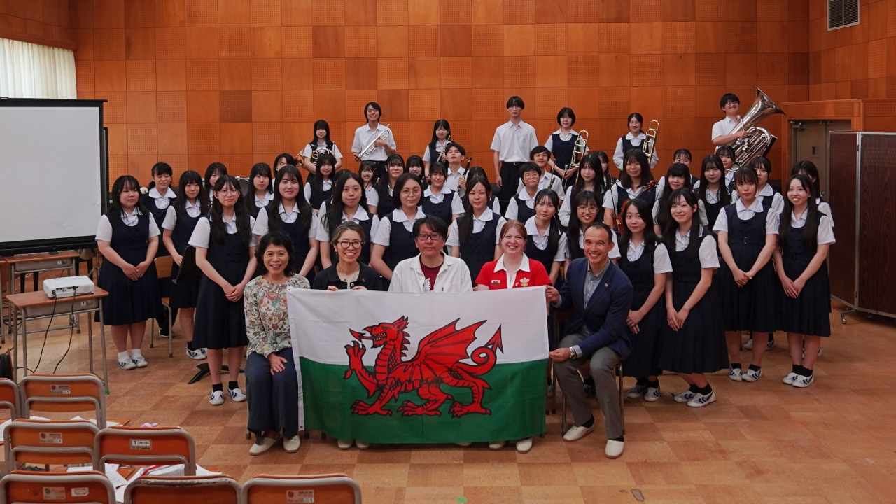 Ahead of Wales and Japan Rugby test match in Noevir Stadium Kobe on 12th July, Suguru Minamide, (Founder of Cymru.jp, music producer raised in Wales) and his creative colleague Ffion Browning from Cardiff, who has worked with him in his reading drama Mabinogion, visited Hyogo Prefectural Nishinomiya High School to give special lesson to their vocal quartet and orchestra. The student chorus and the orchestra will be singing the Welsh National Anthem at the opening of the test match on Saturday 12th July in Kobe.